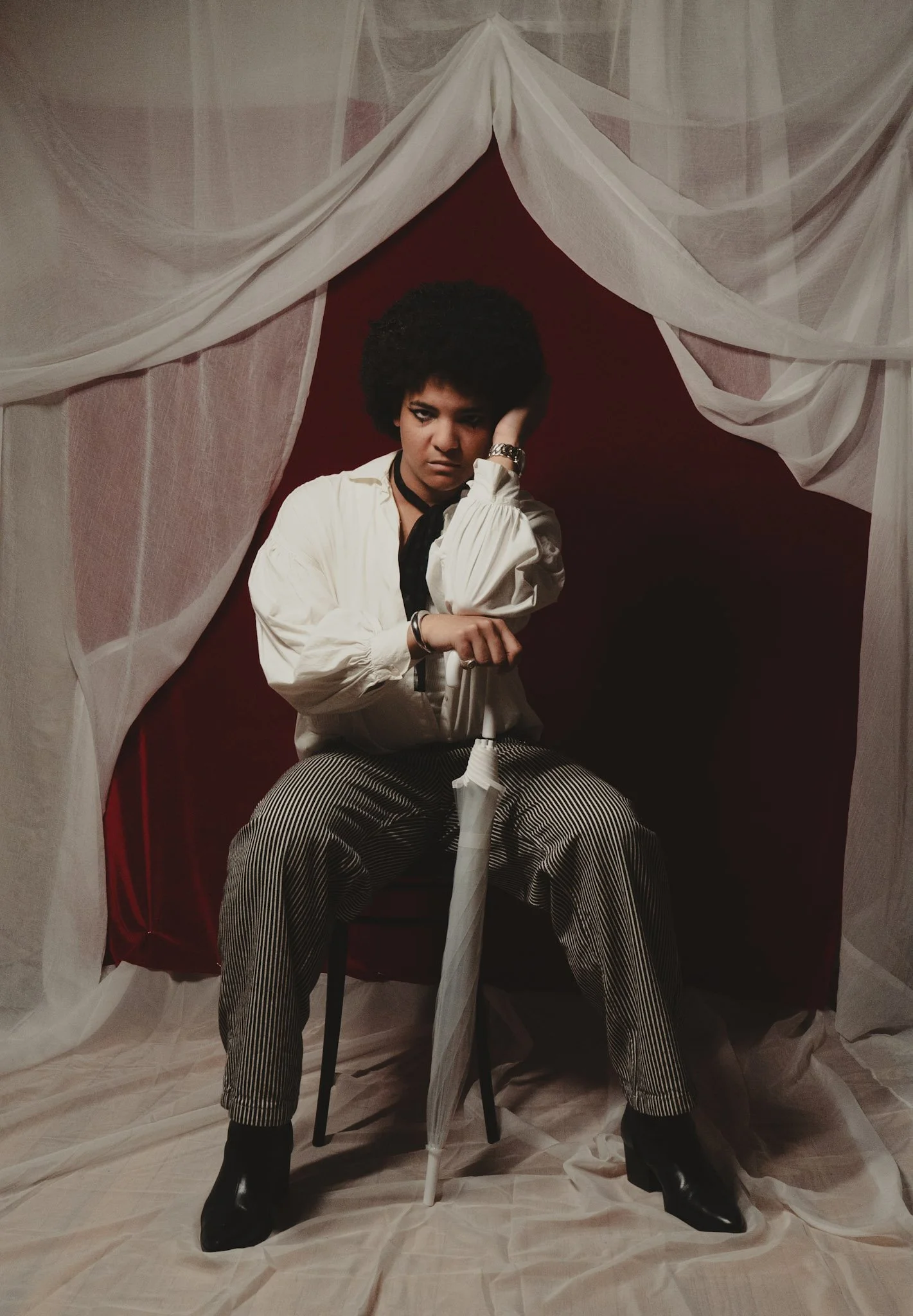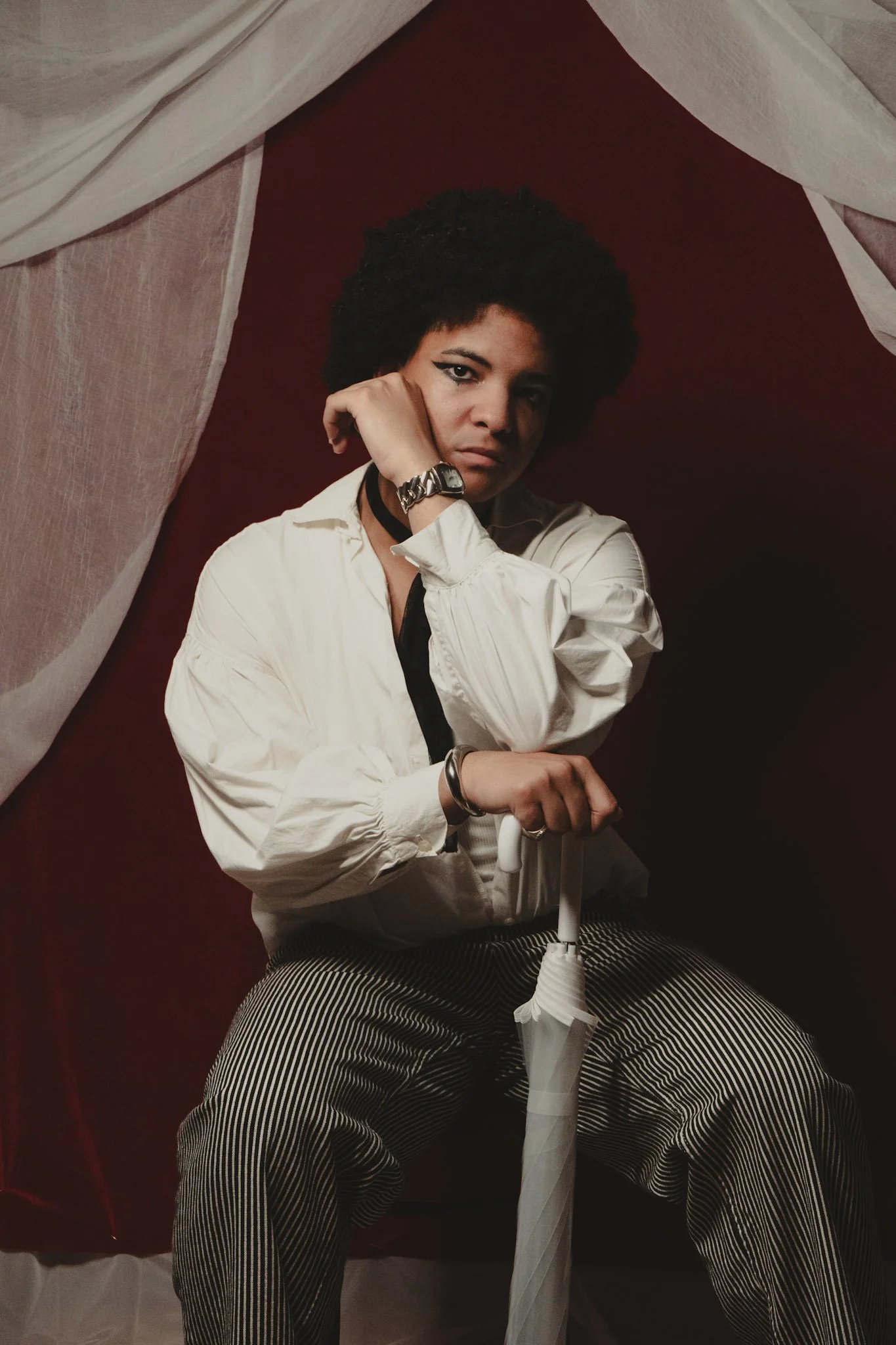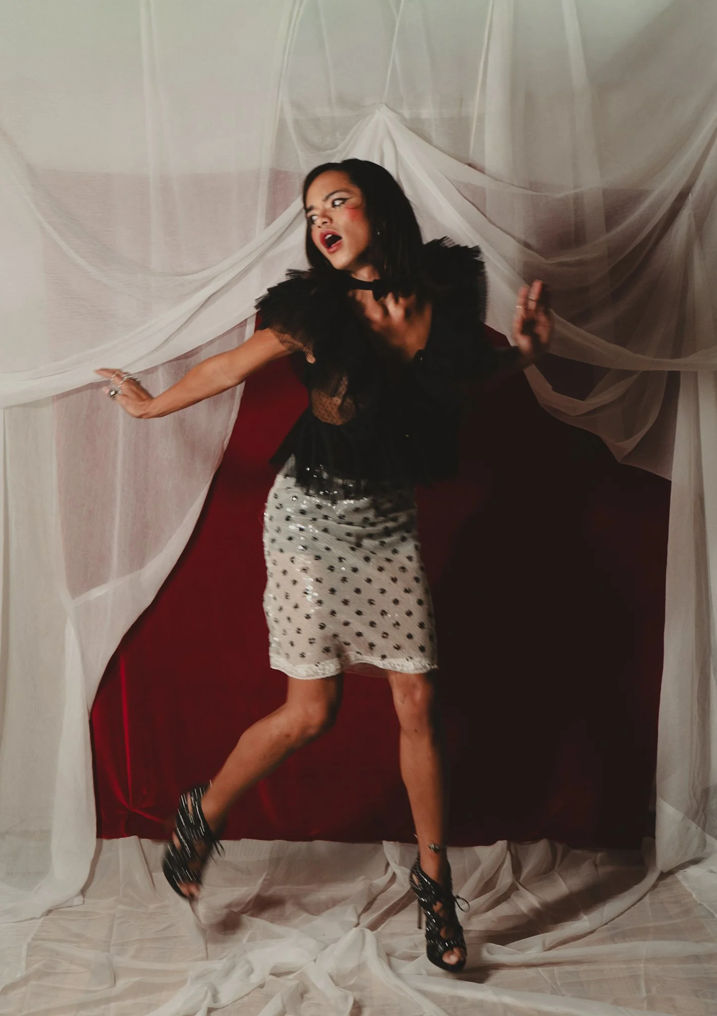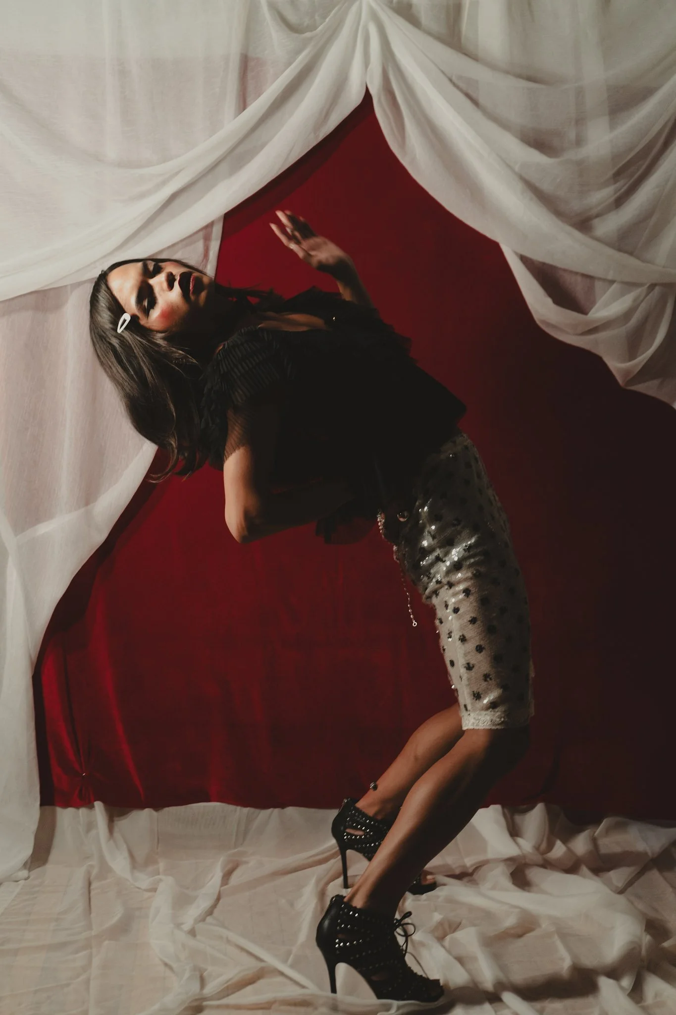 Using ruffles, amusing shapes, emphasized emotions, deep reds, and glimmer throughout was on every mood board. Using clowns and their theatrics as an inspiration led to ideas of Cabaret. The vision flourished through deliberate styling and beauty choices.