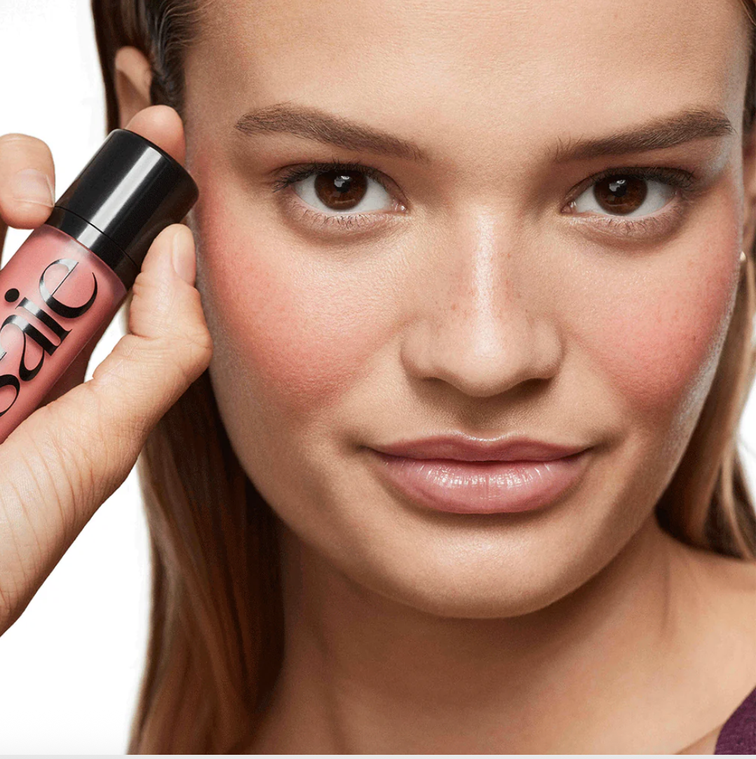 The hero is Haus Labs Color Fuse Glassy Blush Balm Stick in Glassy Pomelo.