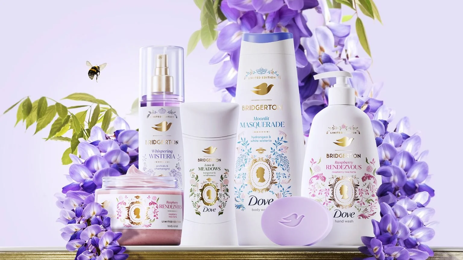 Dove and Bridgerton have come together to create a line of products that can help you get the “royal treatment that every queen deserves.” Four new scents capture the sweet aromas trasnmited through the screen. Body washes, bar soaps, deodorants, and body scrubs allow you to rise in popularity among the royals. Imagine strolling through your garden, smelling like a moonlit masquerade while whispering wisteria, love, meadows, and even a raspberry rendezvous: with this new collection from Dove, you can!